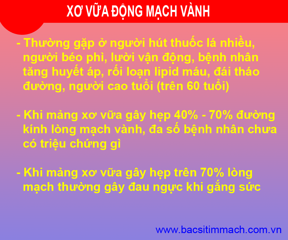 Xơ vữa động mạch là bệnh nếu không được xử trí sớm, các mảng xơ vữa sẽ gây nên hẹp tắc động mạch, từ đó cản trở việc bơm máu vào cơ tim, rất dễ dẫn đến thiếu máu cơ tim, nhồi máu cơ tim.